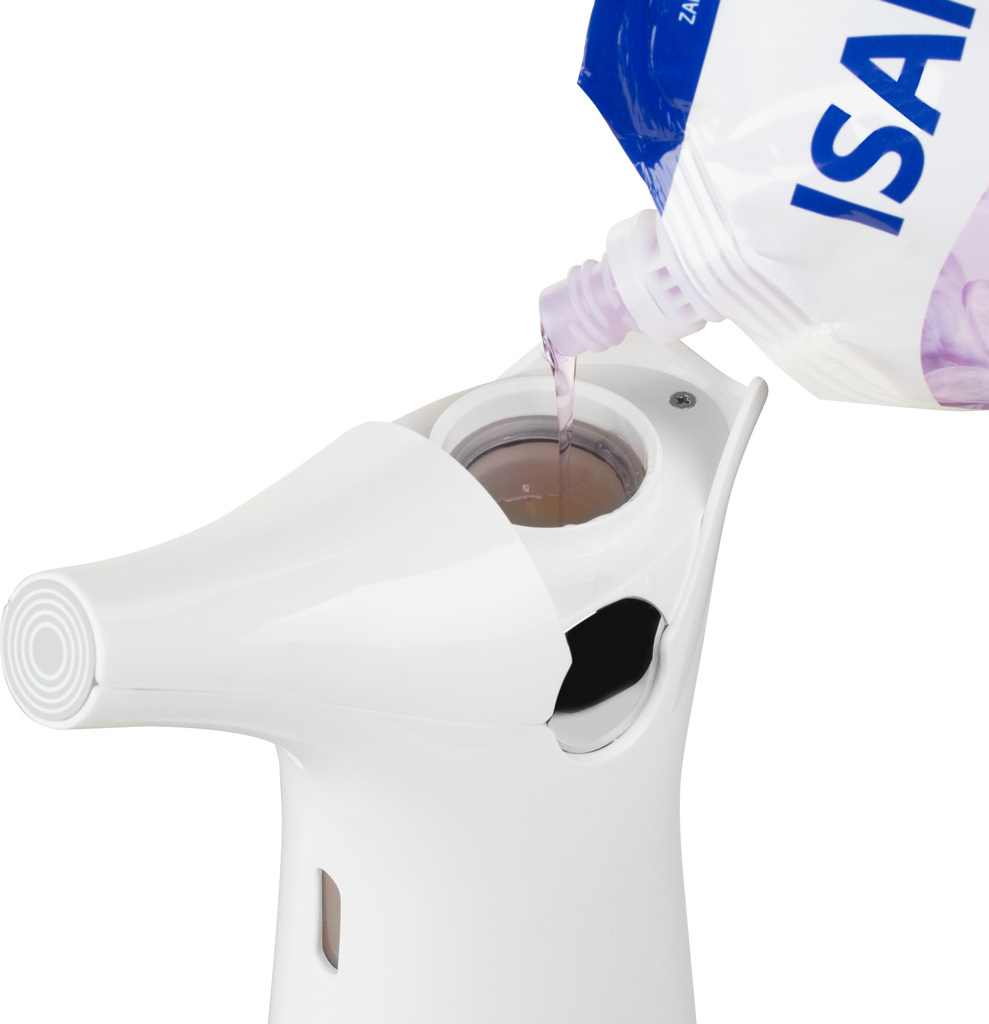 Bezdotykový dávkovač mýdla či saponátu zajistí hygienické dávkování tekutýych přípravků. Senzor dávkovače nadávkuje přípravek sám. Má velmi elegantní design a bude vypad v kuchyni či koupelně naprosto dokonale. Je vybaven systémem No Drip, který zajistí, že mýdlo nebude odkapávat. Pohání jej 4 baterie, které vydrží zhruba jeden rok provozu. Objem nádobky je 220 ml. S dávkovačem ušetříte, protože nepřijde ani kapka saponátu či mýdla nazmar.