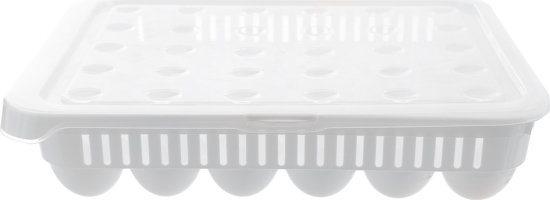 Ani jedno nepřijde nazmar! Pokud chcete bezpečně uložit vaše zrovna koupená nebo domácí vajíčka, pořiďte si tento prostorný plastový box. Vejde se do něho až 30 kusů vajec.