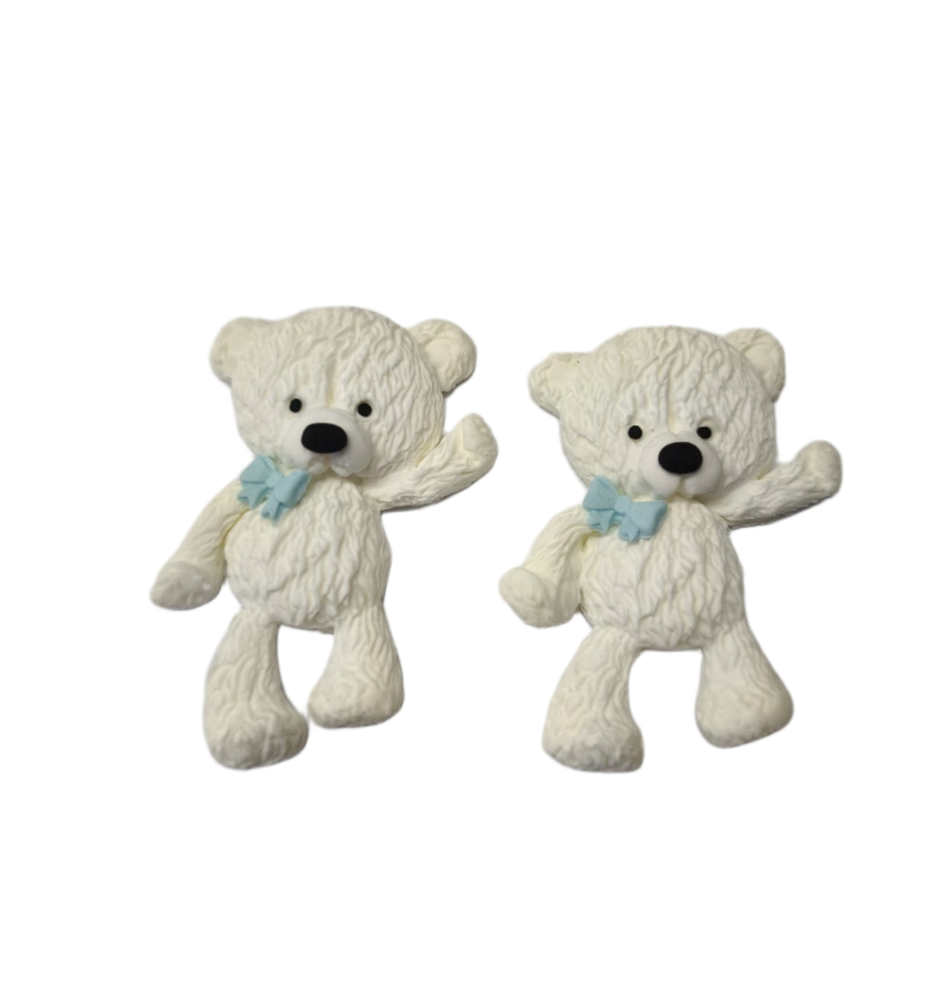 Cukrová dekorace bílá mědvídek s modrou mašlí - Gricko Ivanjica