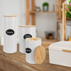 Dobře uskladněné potraviny, které si uchovají svou kvalitu, nezvlhnou a nevysypou se, jsou základem přípravy jídel i nápojů. Proto je tu hladká bílá plechová dóza o objemu 800 ml s bambusovým víčkem se silikonovým těsněním.