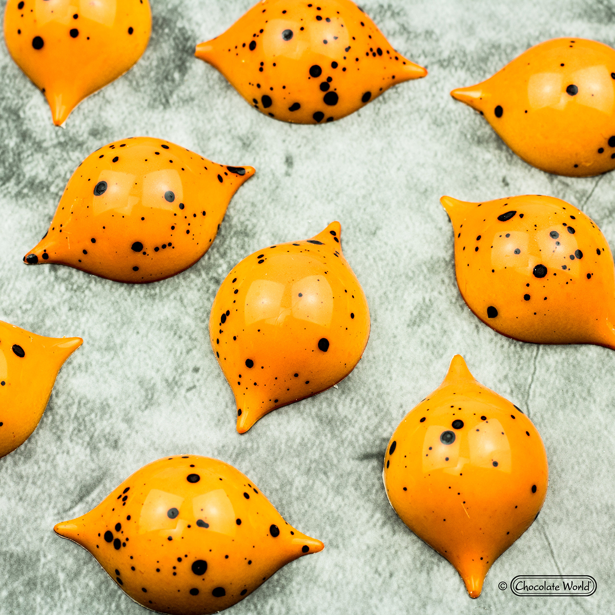 Polykarbonátová forma pro tvorbu dokonalých čokoládových pralinek. Tato vysoce kvalitní evropská forma se snadno používá, vaše čokoláda bude mít lesklý a lesklý povrch a bude se snadno vyjímat. Chcete-li získat barevné čokoládové kousky, natřete si formu tenkou vrstvou barevného kakaového másla, než formu naplníte čokoládou. Design této formy umožní vytvarovat dokonalé tvary s hladce opracovanými liniemi.