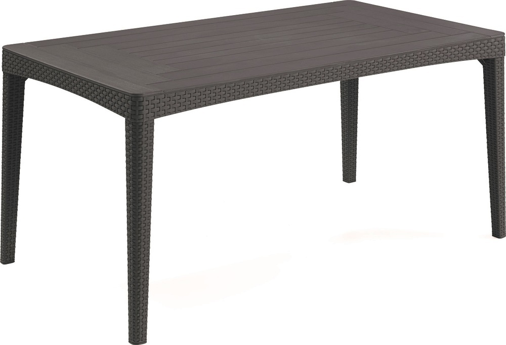 GIRONA je elegantní a praktický stůl, který se dokonale hodí do moderní domácnosti, na terasu nebo zahradu. Povrch, který napodobuje přírodní ratanové a dřevěné materiály, je skvělým designovým prvkem tohoto výrobku. Jeho široký, obdélníkový tvar může pohodlně využít až 6 osob. Stůl se vyznačuje vysokou odolností proti poškození a nežádoucím vlivům počasí. Je velice snadné jej sestavit a udržovat.
