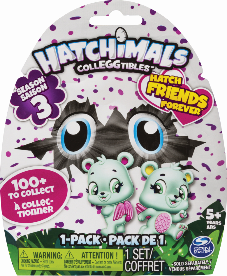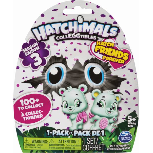 Hatchimals CollEGGtibles ze 3. série! Tato řada představuje „Vyklubané přátele navždy!“ Existuje přes 100 nových kamarádů do sbírky na vylíhnutí. Můžeš najít nejlepší přátele, dvojčata (vždy dvě zvířátka v jednom vajíčku) a roztomilou partičku! Pro začátek líhnutí zahřej každé vajíčko, dokud se srdce na skořápce nezmění z fialové na růžovou. Zmáčkni skořápku, až praskne. Tito Hatchimals mají třpytivá křídla a roztomilé tváře.