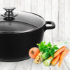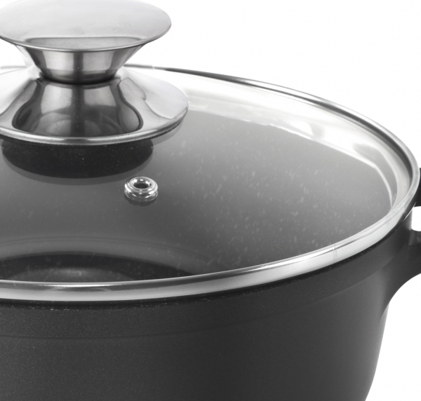 Velký masivní hrnec je opatřen skleněnou poklicí s nerezovým lemem a otvorem pro únik přebytečné páry, budete tak mít přehled nad stavem připravovaného pokrmu. Tato velikost se hodí pro přípravu silného kuřecího vývaru pro větší rodinu nebo když čekáte hosty, oblíbených krémových omáček a různých příloh, k restování zeleniny, vaření knedlíků nebo noků.