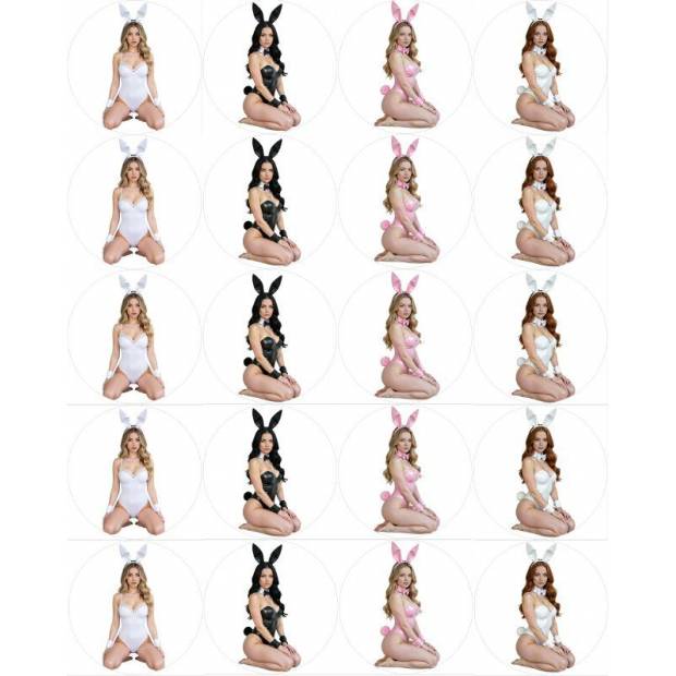 Chceš letos na Velikonoce něco jiného než klasická vajíčka a kuřátka? Tento jedlý papír na muffiny s motivem žen v kostýmu zajíčka vnese na tvůj velikonoční stůl špetku humoru i originality. Na obrázcích najdeš blondýnu, černovlásku i rusovlásku – a koledníci si tak mohou vybrat tu „svou“ zajíčici, která se jim líbí nejvíc.