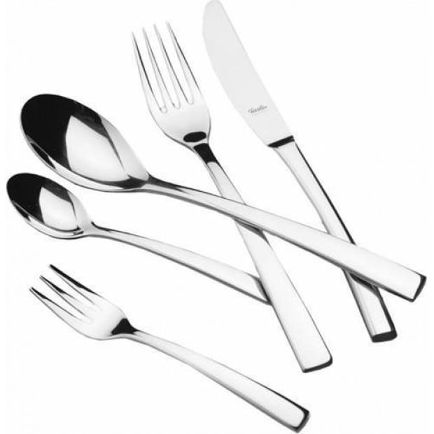 Jídelní příbory v atraktivním designu z velmi kvalitního nerezu, vyrobené v Solingenu v Německu. Základní sada pro 6 osob – lžíce, jídelní nůž a vidlička, lžička a dezertní vidlička - z velmi kvalitního nerezu 18/10, ostří nožů je kované. Příbory je možné mýt v myčce nádobí.