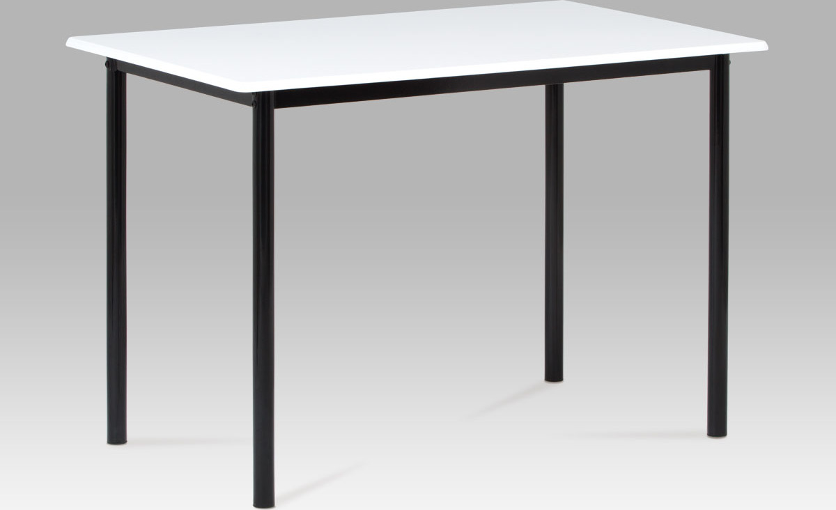 Moderní jídelní stůl v rozměru 110x70 cm, konstrukce je lakována černým lakem, deska stolu je v bílém lesku o tloušťce 2 cm. K tomuto stolu doporučujeme výběr židlí také s konstrukcí lakovanou na černo, např. AC-1220 BK / WT.