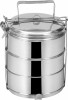 Obsahuje 3 nerezové misky o objemu 1 litr, budou ideální pro uložení celého menu, polévky, hlavního jídla a salátu nebo dezertu. Jeho součástí je také kovový stojan, který umožňuje skládání nádob na sebe a zároveň je opatřený přezkou sloužící k jejich pevnému zajištění.