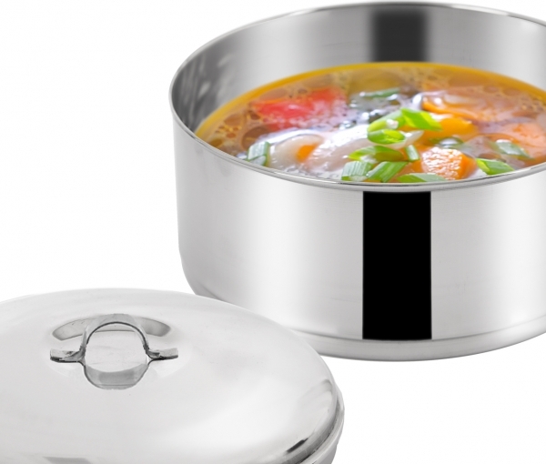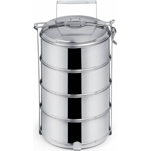 Obsahuje 4 nerezové misky o objemu 1 litr, budou ideální pro uložení celého menu, polévky, hlavního jídla, samostatné přílohy a dezertu. Jeho součástí je také kovový stojan, který umožňuje skládání nádob na sebe a zároveň je opatřený přezkou sloužící k jejich pevnému zajištění.