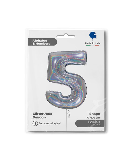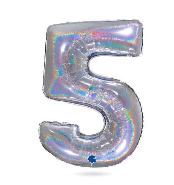 Nafukovací balónek číslo 5 hologram102 cm - Grabo
