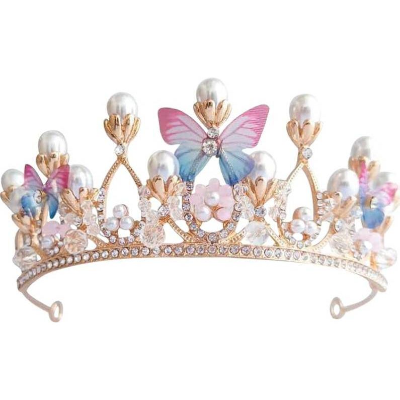 Nejedlá dekorace kovová Koruna zlatá s perlami a motýlky