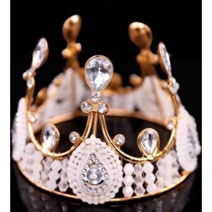 Nejedlá dekorace kovová Koruna zlatá s bílými perlami