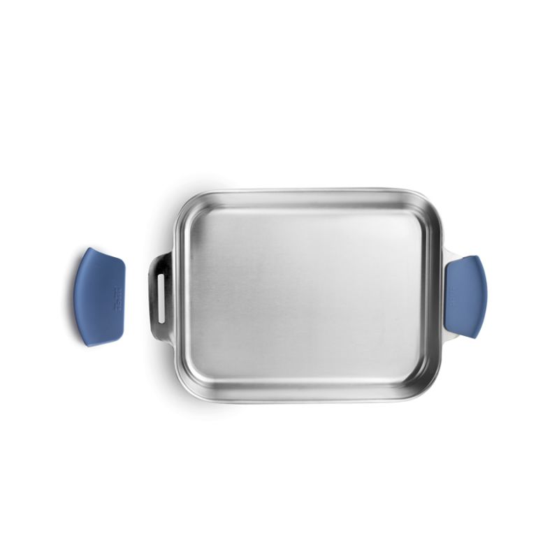 Lehký tvarovaný pekáč z nerezové oceli 18/10 se sklopnými madly.