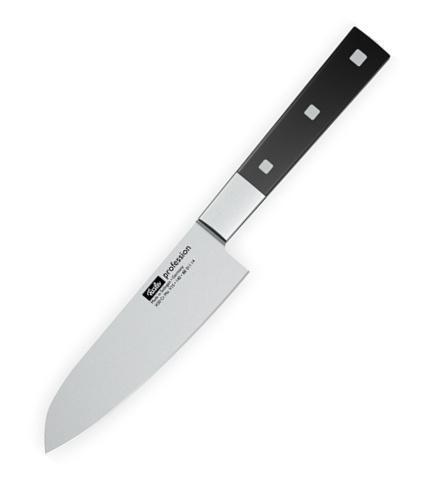 Víceúčelový kuchyňský nůž se širší čepelí především pro přípravu asijských jídel. Může se použít k řezání ryb, krájení masa, zeleniny a dalších potravin. Nože řady Profession značky Fissler mají výjimečnou kvalitu a moderní vzhled - střenka Solingen je zasazená do ergonomické rukojeti, která se perfektně drží. Mezi rukojetí a ostřím není žádná mezera, na noži nikde nezůstávají žádné zbytky krájených potravin a surovin - je tedy zcela hygienický a velmi dobře se umývá i v myčce nádobí.