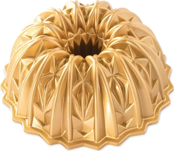 Výjimečně kvalitní bábovková forma s designem krystalů. Zajímavý tvar se krásně reprodukuje na hotovém výrobku. Bábovka nevyžaduje kromě jednoduché polevy žádné zdobení, ale lze ji použít jako základ pro vytvoření vlastní barevné kompozice, pro dokonalý efekt. Nepřilnavý povlak usnadňuje vyjmutí upečeného zboží a čištění formy. Před každým použitím formu vymažte tukem a lehce vysypte moukou. Před prvním použitím ji umyjte v teplé vodě s prostředkem na mytí nádobí a naplňte do 3/4 těstem. Pro dokonalé zobrazení tvaru před vložením do trouby několikrát poklepejte formou s těstem o desku stolu - těsto formu vyplní důkladně, bez vzduchových bublin. Nepoužívejte ostré nástroje, chemikálie, ostré houbičky a drátěnky - mohou poškodit povrch formy ruční mytí - prodlužuje životnost nepřilnavé vrstvy. Rozměry 25,4 × 9,2 × 25,4 cm.