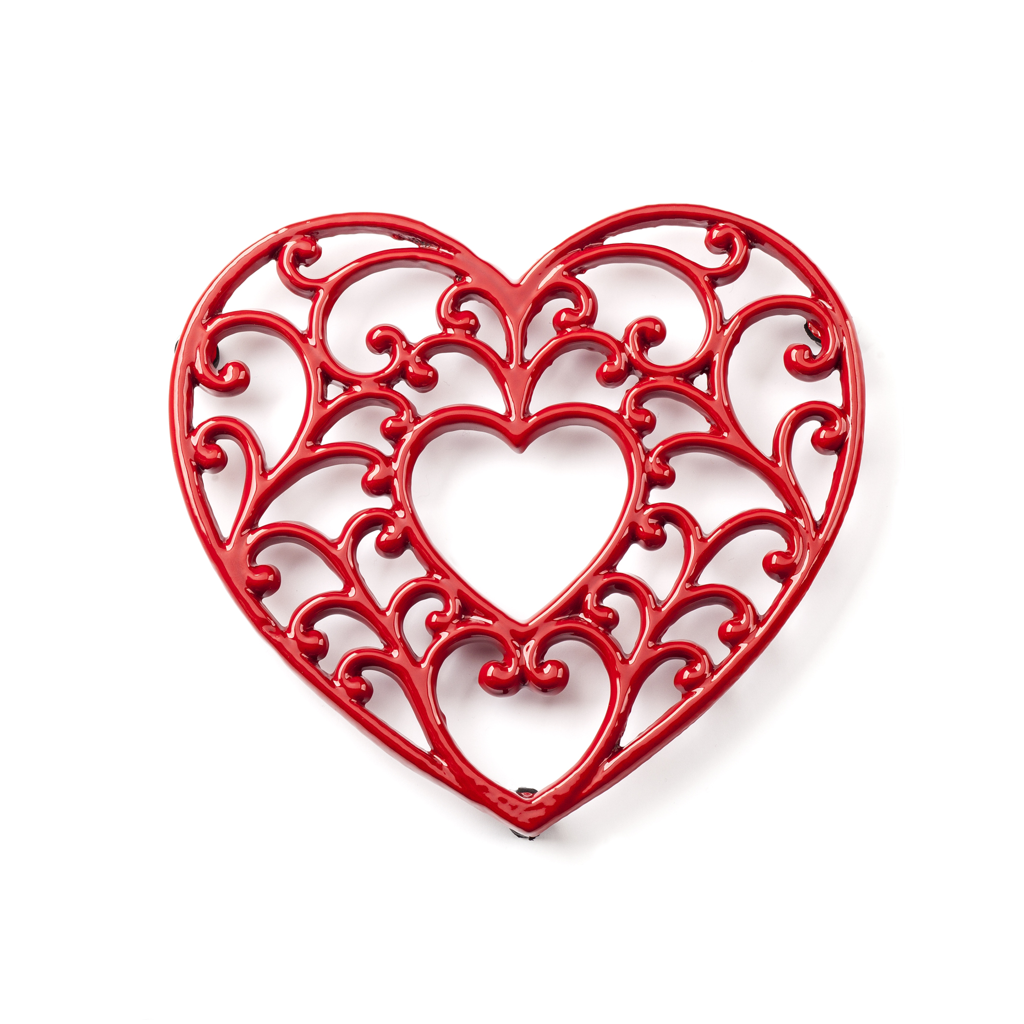 "Podložka pod hrnec, která spolehlivě ochrání desku kuchyňské linky nebo stolu. Je vyrobená z litiny, na povrchu má kvalitní smaltovaný povrch červené barvy. Rozměry 17 x 19 cm"