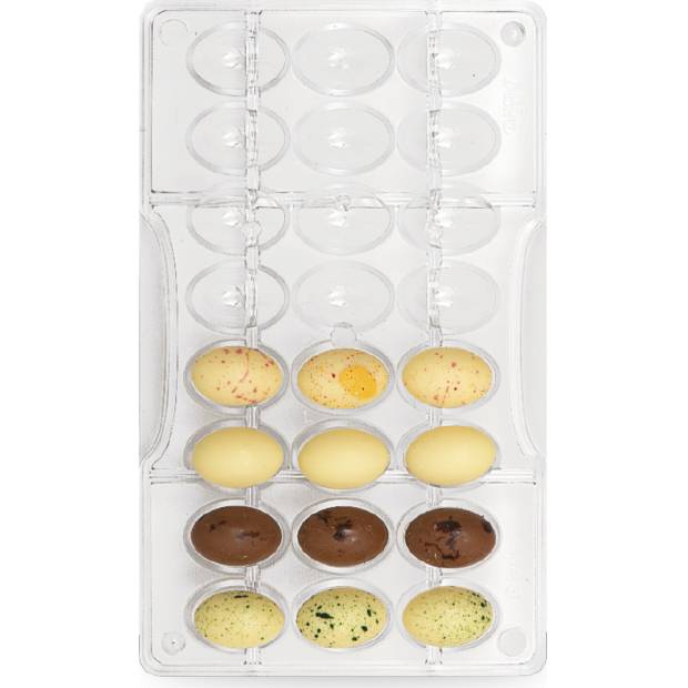 Polykarbonátové formy decora jsou dokonalé pro přizpůsobení čokoládových vajíček originálním překvapením, tvary, dekoracemi a chutí. Snadno použitelné a s praktickým průvodcem krok za krokem v balení umožňují vytvářet nádherná velikonoční čokoládová vajíčka.