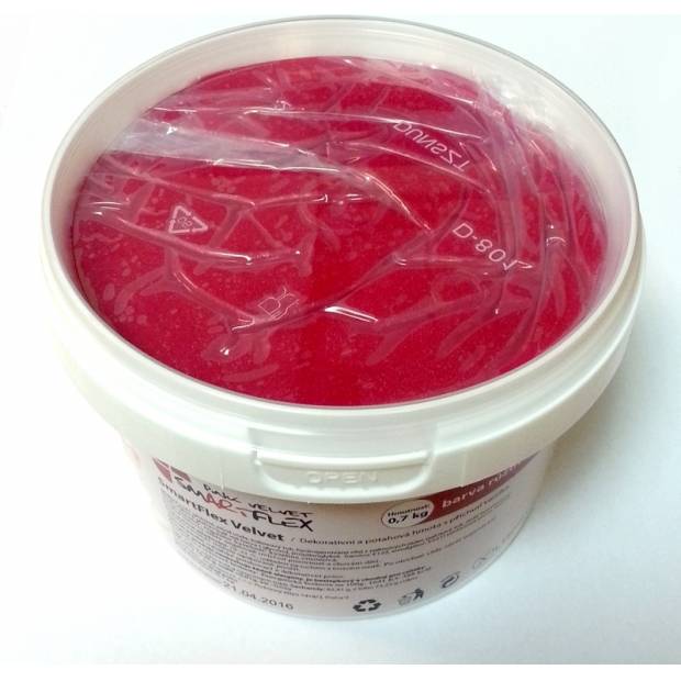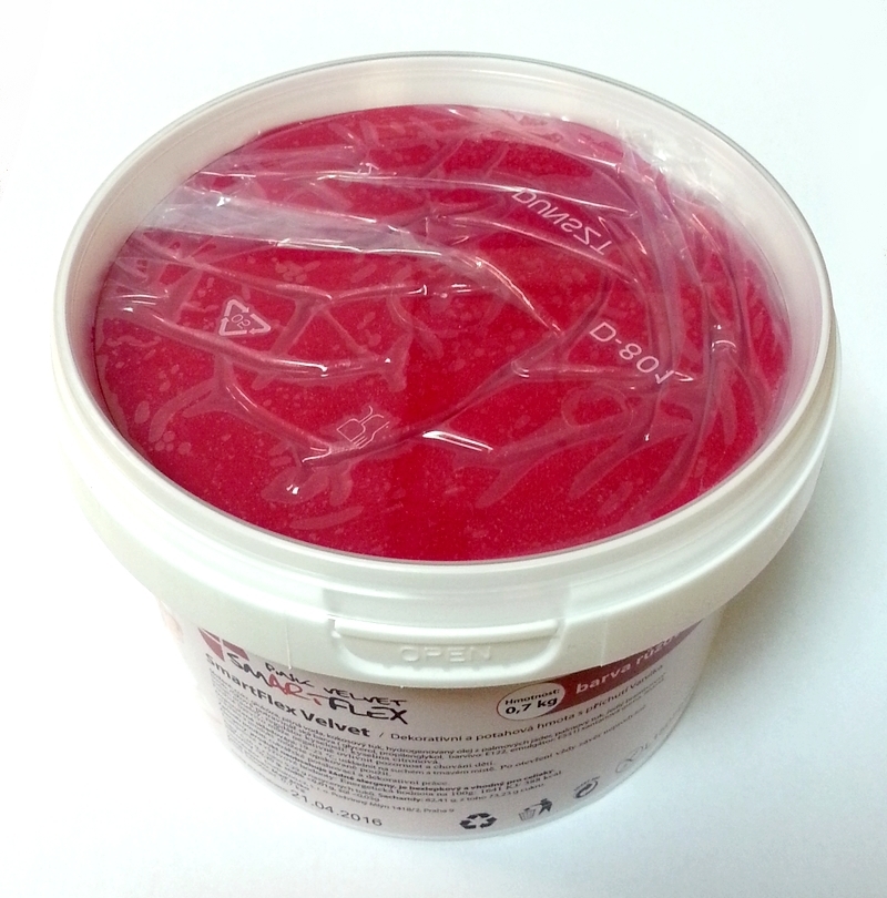 Sametově hebká cukrová hmota má sytě růžovou barvu, není třeba ji už dále barvit. Hmota je velmi pružná, nelepí se. Hodí se na potahování i modelování větších ozdob a figurek, které perfektně drží tvar. Neobsahuje alergeny. Bezlepkový produkt.