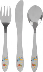Dětský příbor s barevným dekorem letadel pro kluky .