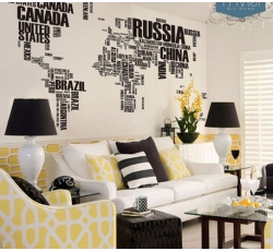 Samolepka s motivem mapy celého světa. Vhodná dekorace do bytu, ale i do pracovny, či firemních prostor. Rozměry po nalepení 200 cm x 90 cm.