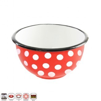 Servírovací miska s kvalitním smaltovaným povrchem. Vnitřní část misky je bílá, na té vnější je červenobílý dekor. Misku je možné mýt v myčce nádobí. Může se použít na servírování nejrůznějších pokrmů - horkých i studených - i na přípravu těsta a vaření jídel na všech typech ohřevů.