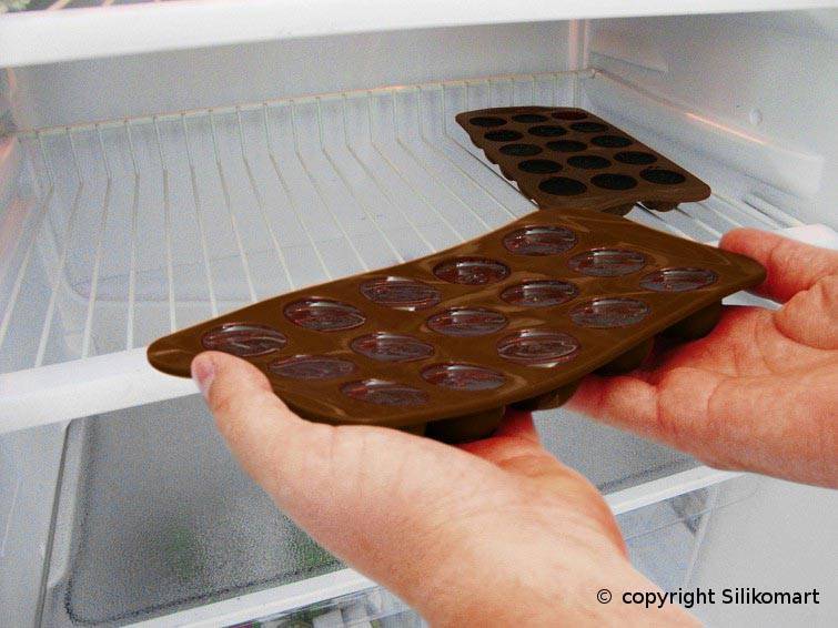 Vytemperovanou čokoládu vlijeme do formy, čokoládu rozetřeme do prohlubní, na povrchu uhladíme a formou několikrát bouchneme o pracovní desku stolu. Tím se zbavíme případných bublinek. Formu odložíme do chladu a po ztuhnutí čokoládky vyloupneme. Pokud budeme připravovat pralinky, tak prohlubně formy vytřeme za pomoci menšího štětečku vytemperovanou čokoládou, po zatuhnutí zopakujeme. Pak přidáme náplň a pralinky nahoře čokoládou uzavřeme. Necháme ztuhnout a vyloupneme. Můžeme vyrábět čokoládky a pralinky v různých chuťových kombinacích přidáním různých ingrediencí.