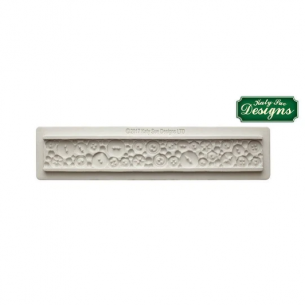 Vytvarujte si jednoduše touto silikonovou ozdobný lem s knoflíky, který použijete jako ozdoby různých cukrářských dezertů a dortů. Tyto formičky vypadají krásně jako dekorace na svatební dort. Používají se s cukrovou nebo fondánovou pastou. S formami se velmi dobře pracuje. Rovnoměrně dovnitř vtlačte hmotu, válečkem ji rovnoměrně uhlaďte. Přebytečnou hmotu seškrábněte a poté pastu odtlačte od krajů, abyste ji z formy uvolnili. Hotovou výzdobu si uložte na suchý a čistý povrch.