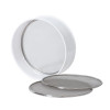 Plastové sítko se třemi výměnnými ocelovými oky. Okruh střední, velké a jemné umožní prosít různé druhy potravin od cukru po ovocné pyré, různá zrna a prášky. Vyrobeno z plastu a nerezové oceli. Rozměry 20 x 7 cm.