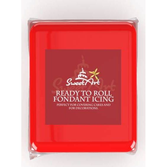 Neonově červená cukrová hmota s vanilkovou příchutí na potahování dortů a výrobu cukrových figurek.