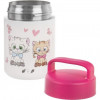 Termonádoba udrží vložený pokrm po dlouhou dobu teplý nebo naopak chladný. Bude se vám hodit na teplé polévky pro děti, osvěžující saláty nebo ovocné přesnídávky. A to doma i na výlety. Snadné uzavření na závit, plastové termo víčko s uchem. Materiál: nerez, plast, silikonové těsnění. Barevný dekor. Rozměry: pr. 8,5 cm, v. 15 cm, celkový objem 0,48 l, plnění max. 0,42 l. Není vhodná do myčky.