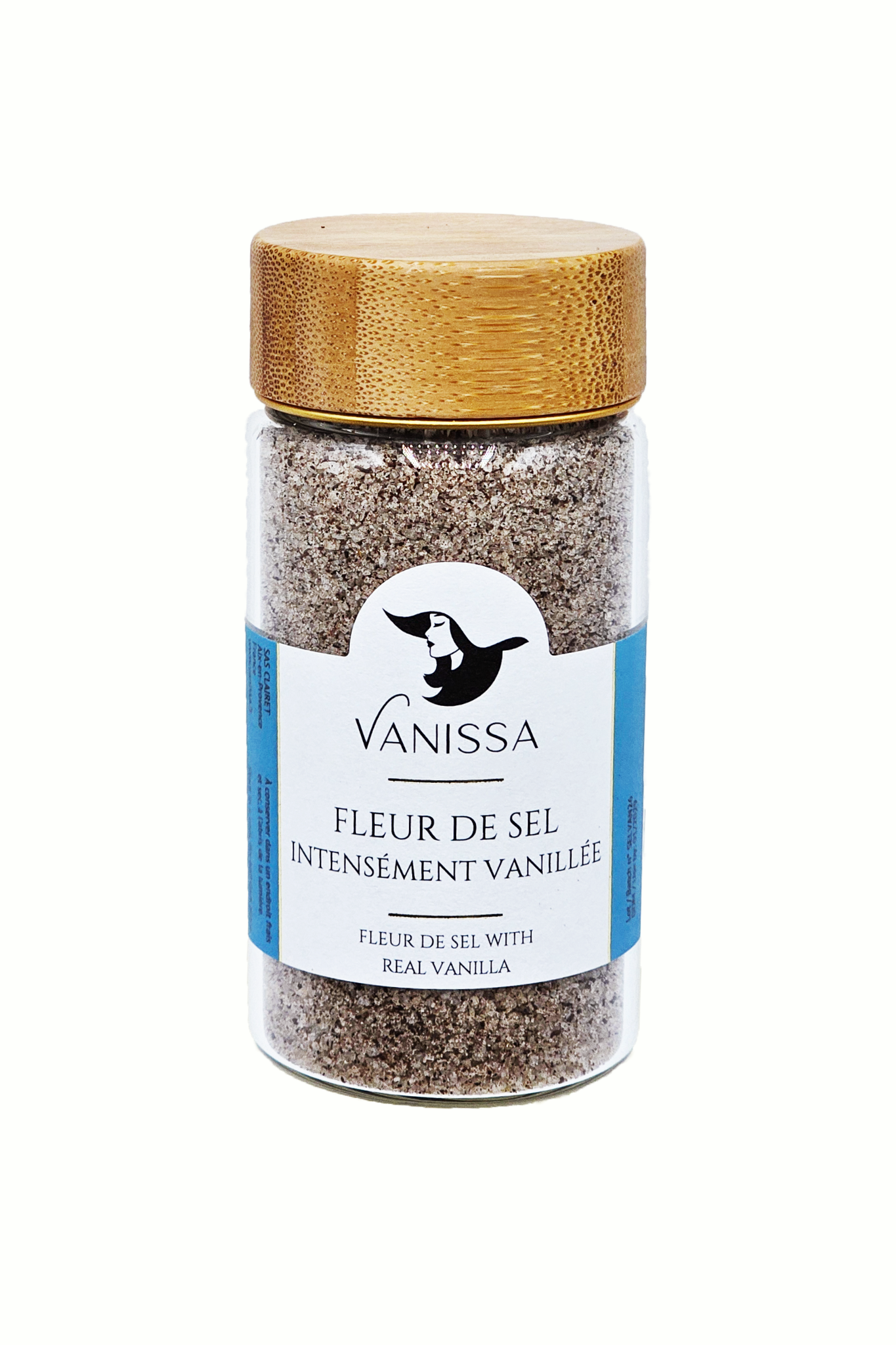 Fleur de Sel (francouzsky „Květ soli“) je ručně sklízená mořská sůl, která se tvoří na povrchu solných lůžek a sbírají ji pracovníci, kteří seškrabují pouze horní vrstvu soli. Fleur de Sel, bohatá na minerály a vynikající chuťové vlastnosti, je jednou z nejdražších solí na světě. Naše Fleur de Sel se sbírá u pobřeží Bretaně (Francie) a kombinuje se s prémiovými mletými vanilkovými lusky. Vanilka Fleur de Sel se skvěle hodí k mořským plodům a drůbeži a přirozeně se hodí ke sladkokyselým jídlům. Vanilla Fleur de Sel je také skvělá pro výrobu karamelů z vanilkových lusků, Foie Gras a dokonce je z ní nejlepší margarita rimmer vůbec.