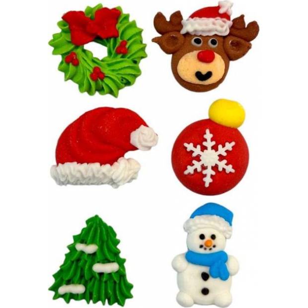 Mix cukrových figurek s vánočními motivy je ideální pro zdobení malých a středně velkých dortů a dalších zajímavých cukrářských výrobků pro každé dítě. Každý kousek je připraven k přímé aplikaci na dort bez nutnosti dalších úprav.