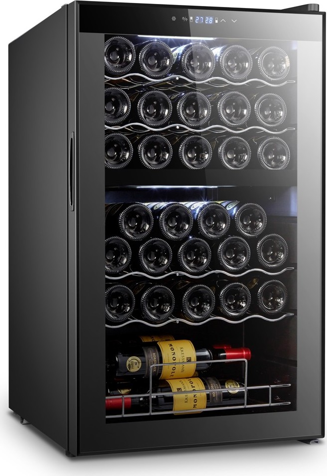 Kompresorová duální vinotéka Guzzanti GZ 34DD dvě nezávislé duální teplotní zóny pro 33 láhví horní zóna pro bílá vína od 5 - 14 °C dolní zóna pro červená vína od 12 - 18 °C elektronické ovládání s LED display a digitálním termostatem vnitřní LED osvět