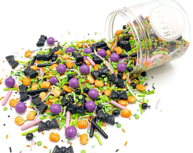 Krásná jedlá halloweenská posypová směs! Touto směsí ozdobte svůj dort nebo mug cakes a za chvíli budete mít pravé halloweenské dezerty.